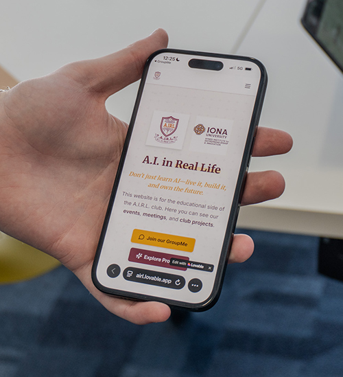 A.I. In Real Life (AIRL) aspires to build a vibrant community of Iona students who are curious about artificial intelligence and its growing role in the world around them. By fostering open conversation and collaboration between students, faculty, and industry professionals, the club keeps its members up to speed on the latest developments in AI, from breakthrough tech to the ethical and social questions shaping our coexistence with technology. Whether a student is a complete beginner or already working on their own projects, AIRL offers an inclusive space to explore, question, and create.