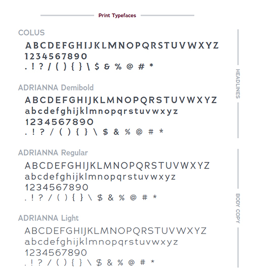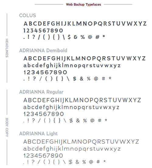 To ensure consistency of typefaces across users, our main brand typeface, COLUS, can be downloaded here, and our secondary typeface, ADRIANNA, can be downloaded here.