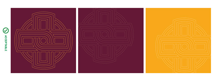 Upon request, University Marketing & Communications can provide a pre-designed line art version of the Celtic knot icon in .PNG, .EPS and .AI formats with transparent backgrounds for simple application in different marketing and promotional materials. The line art version of the Celtic knot icon is available in three colors, Fighting Maroon, Celtic Gold and Medium Cobblestone Gray. When using using the Celtic knot line art tone-on-tone, use Iona University’s primary colors placing the Fighting Maroon line art at 90-95% tone or Celtic Gold line art at 55-60% tone of the same background color.