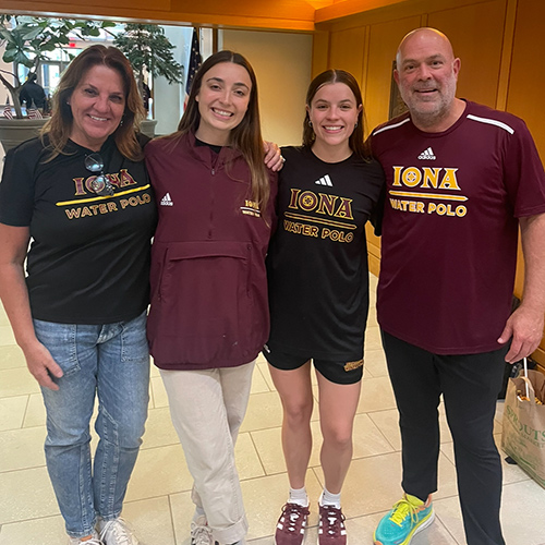 For the Tovar family, Iona University became more than just a place of learning – it became a second home. Their journey at Iona began when their eldest daughter, Carli ’21, was recruited to play Division I water polo. Soon after, Mia ’23, ’24MBA followed in her sister’s footsteps, also joining the water polo team.