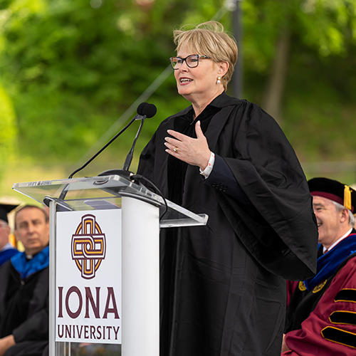 “You not only know how to collect data; you know how to decipher its meaning. You not only know how to administer an I.V.; you understand the impact of the medicine. You have not only read literary texts; you understand how they shape our understanding of human identity,” Carey said. “Iona graduates are known for giving attention to what is important and using their education to make an impact on the world. I look forward to the Class of 2023 building on that tradition.”