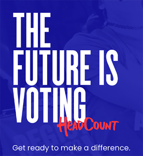Visit HeadCount.org to register to vote, check your registration status, volunteer for virtual events, learn more about internship opportunities and follow on social media.