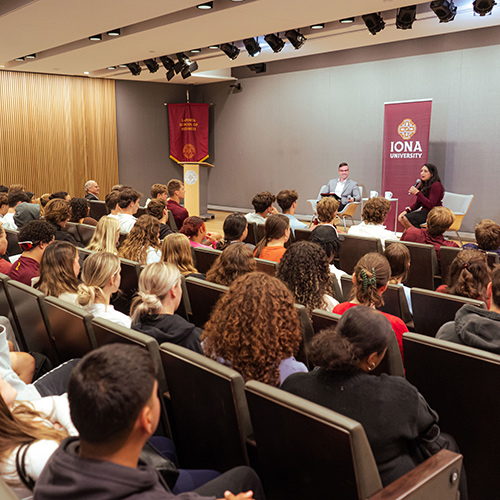 Through regularly scheduled talks, Iona alumni come back to campus frequently to share the most valuable lessons they’ve learned over the course of their careers. These intimate conversations allow current students the opportunity to network and learn from successful Iona alumni from a wide variety of industries.