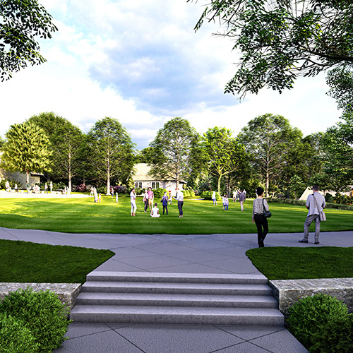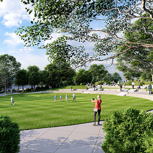 Anchored by the Blessed Edmund Rice Chapel, the Mehmel Green reimagines a former industrial area and creates a beautifully landscaped and vibrant green space. Featuring sweeping views of the City of New Rochelle, Mazzella Field and the LaPenta School of Business, the Mehmel Green further unifies campus by connecting to the Murphy Green and the newly renovated LaPenta Student Union in the heart of campus.