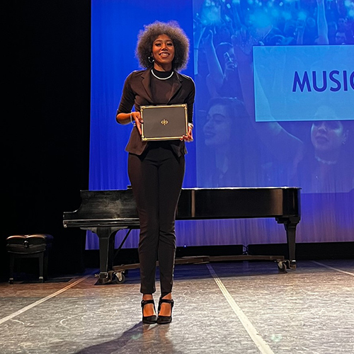 Most recently, Green took her singing talents to the Kennedy Center American College Theater Festival (KCACTF), a national theater program that invites 18,000 college students from across the country to compete, while enhancing and refining their performance skills. After delivering a powerful solo performance during the KCACTF Regional Festival in late January 2023, Green was crowned the regional winner, rising to the top of 32 performers from New England and Northeast New York.