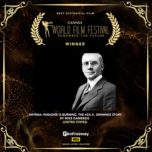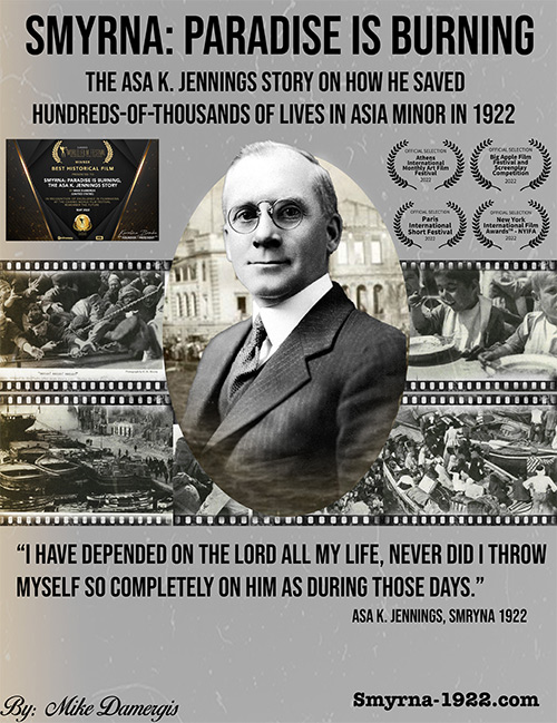 “Smyrna: Paradise is Burning, The Asa K. Jennings Story” tells the story of how a frail YMCA employee fed, sheltered and led an evacuation of 350,000 people from the port city of Smyrna, which became Ground Zero for one of the greatest human tragedies in 1922. It was there that the last violent episode in a 10-year holocaust occurred before the final fall of the Ottoman Empire on the Turkish subcontinent. During that time, three million people – Armenians, Greeks and Assyrians, all Christian minorities – were raped and killed.