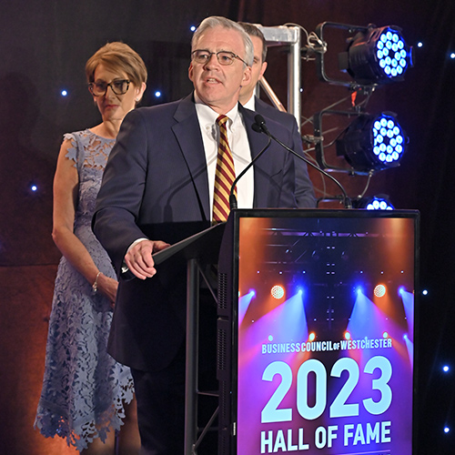 With nearly 500 business leaders on hand, the Business Council of Westchester presented its annual Hall of Fame Award for Corporate Citizenship to Iona University on April 25, 2023.
