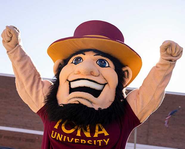 Killian the Gael keeps the Iona spirit high throughout the year! Modeled loosely on various Gaelic characters, Killian enrolled at Iona many years ago and loved it so much he decided to stay.