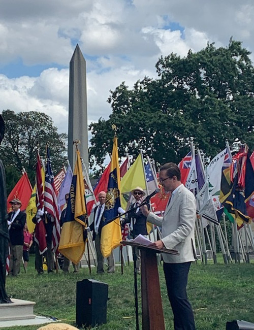 Michael Crowder delivering the keynote address at the Battle of Brooklyn Commemoration at the Green-Wood Cemetery.