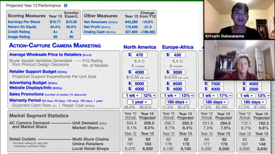 “Having to work on GLO-BUS every week gives me a deep insight into how I should run a company in the future,” said Kritsarin Oukosavanna ’21. “My teammate, Spencer, and I are very competitive since we come from a sports background. All in all, I enjoy playing this real-life game, where I can refine my business performance skills.”