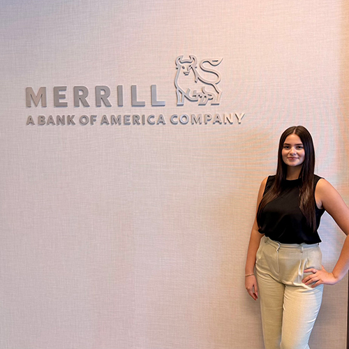 Herolinda Dacaj ’25 dedicated her summer break interning for Merrill Lynch in Greenwich, Conn., where she worked in Private Wealth Management focusing on expense management. She looks forward to continuing her internship as a seasonal client associate until June 2025.