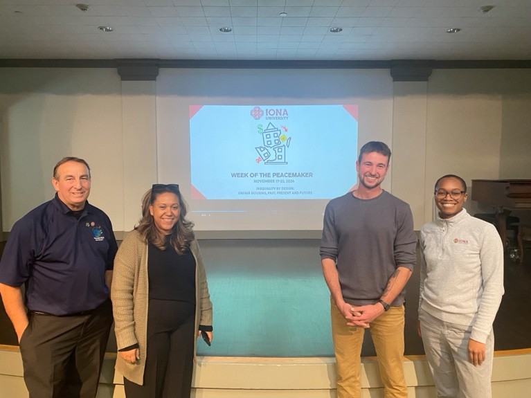 - Interreligious Coalition of New Rochelle Panel on Housing- Zoovia Hamiduddin, M.D.; Min. Mark McLean, President, Inter-Religious Coalition of New Rochelle, President, NAACP New Rochelle Branch; George Morris, Iona Class of 1970, Secretary, Inter-Religious Coalition of New Rochelle; Laila Shakir, Iona Class of 2026